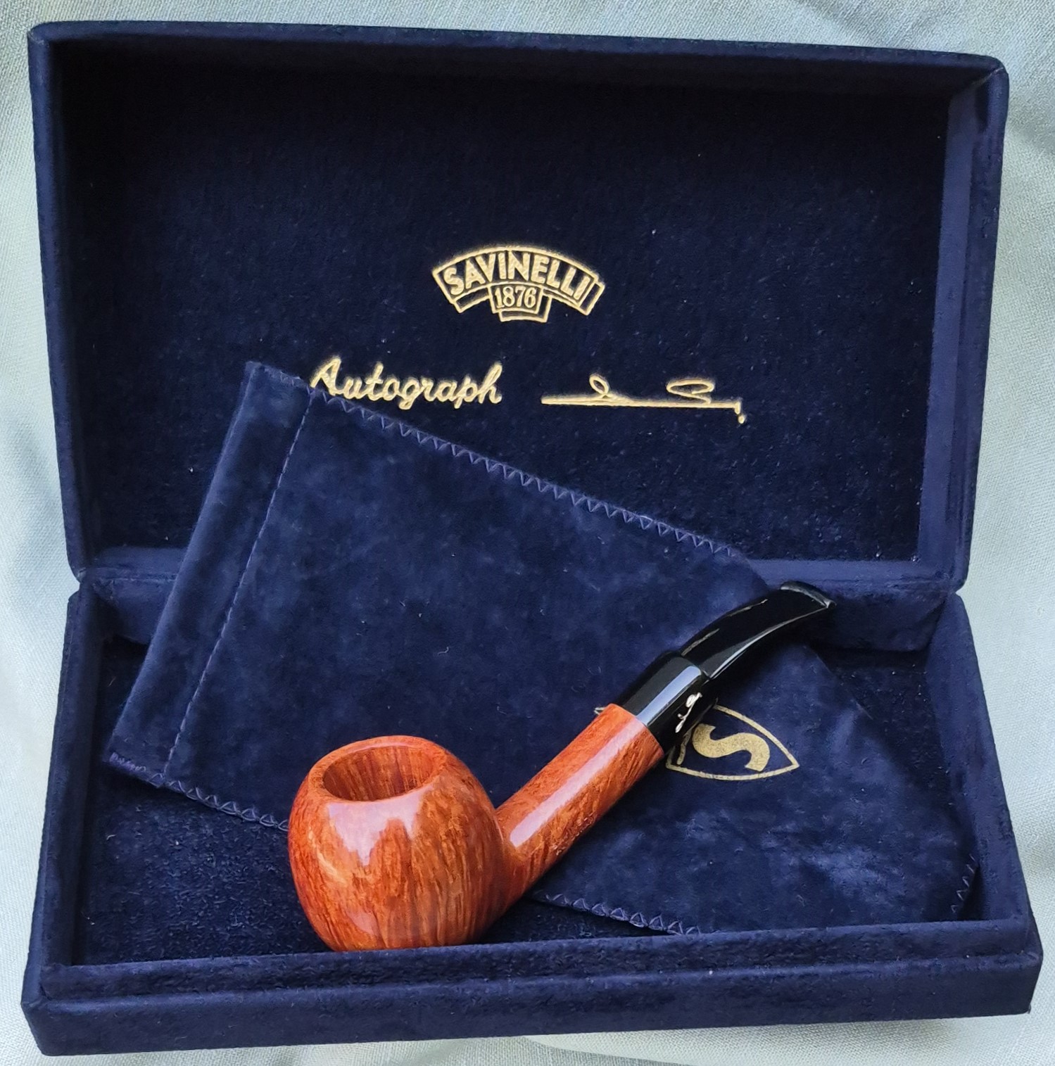 This rare, unique and irreplaceable pipe, is shaped from the raw material following the grain and the “fiammatura” (“flame”), which Mother Nature has put at our disposal, according to the artistic mood of our master craftsmen. The wood is natural and the shape is unique for each piece. The name “Autograph” was created from the handwritten signature of Achille Savinelli Senior printed on the shank and mouthpiece.