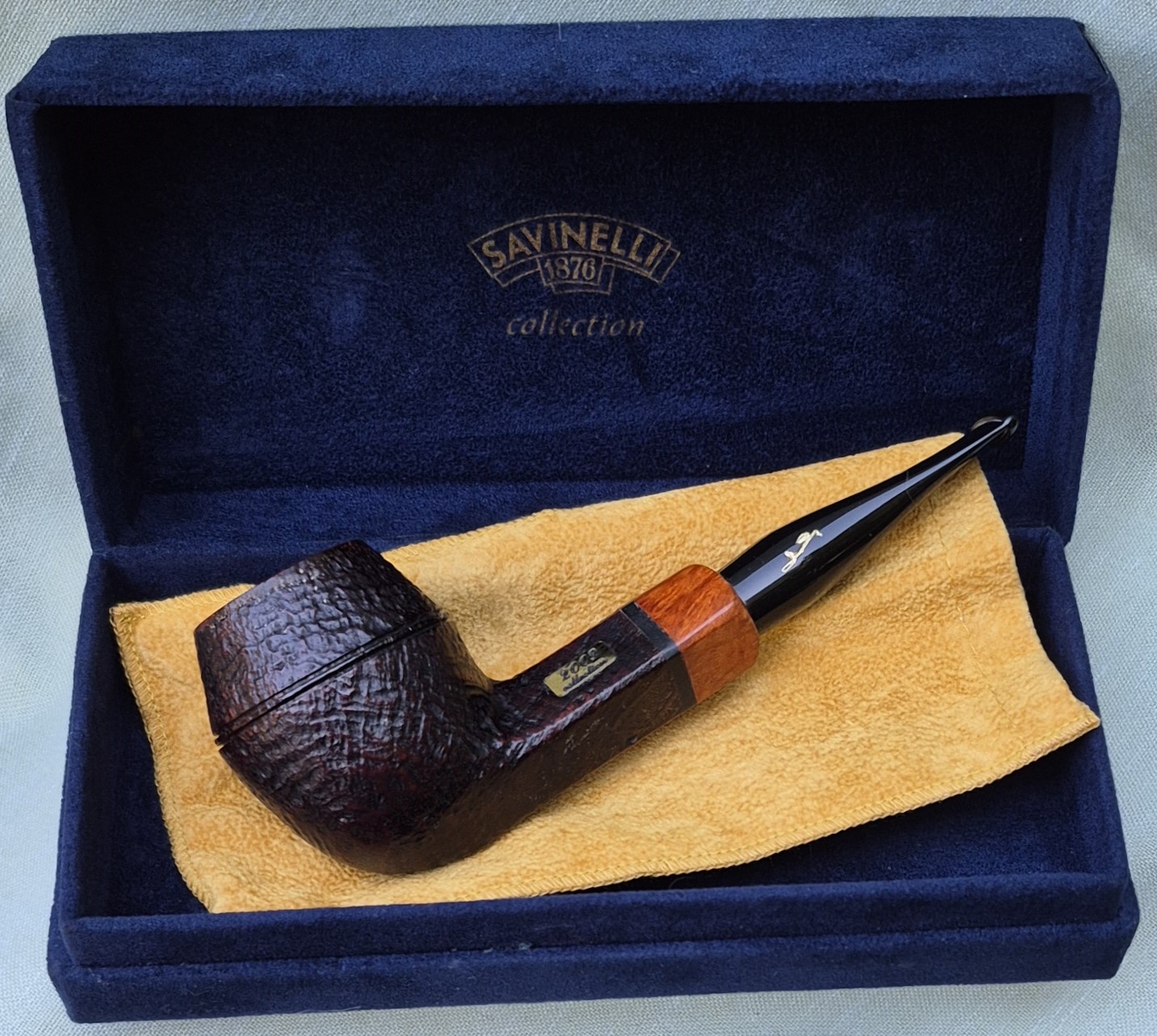 The pipe is authenticated by the inlaid plaque and the signature of Achille Savinelli on the mouthpiece, and accompanied by a numbered certificate of provenance.