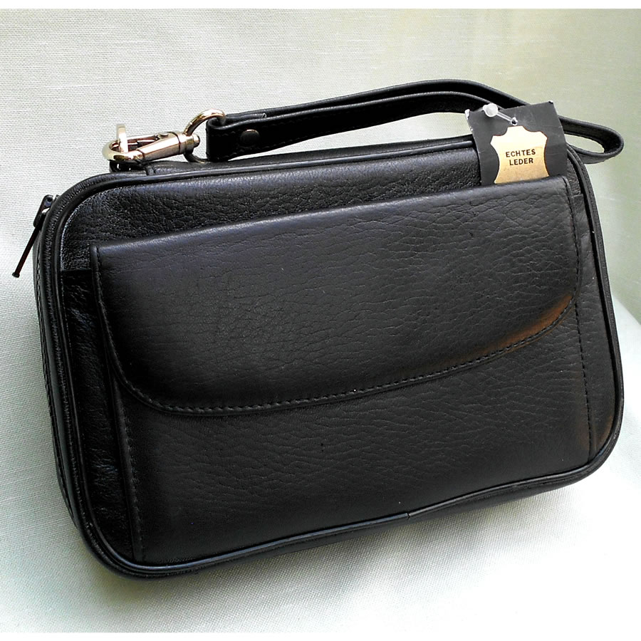 4-Pipe Bag, Black Leather ; Strap; Zip closure