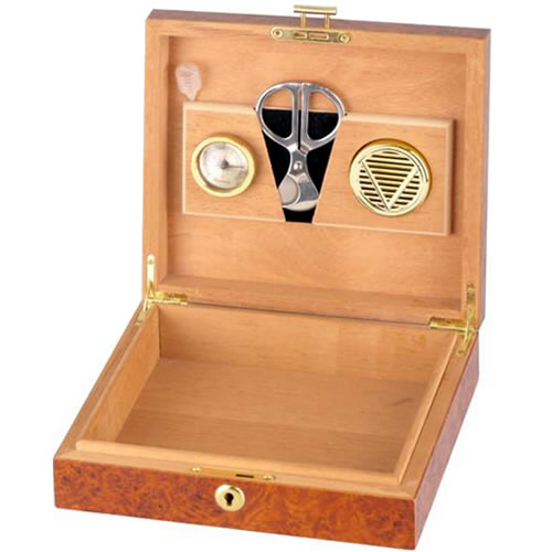 Burl Desk Humidor for 10 cigars, with Cigar Scissors; 73-J0061