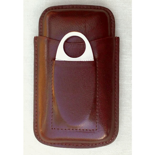 Cigar Case; 3 Robusto cigars; Firm brown Leather, Cutter pocket