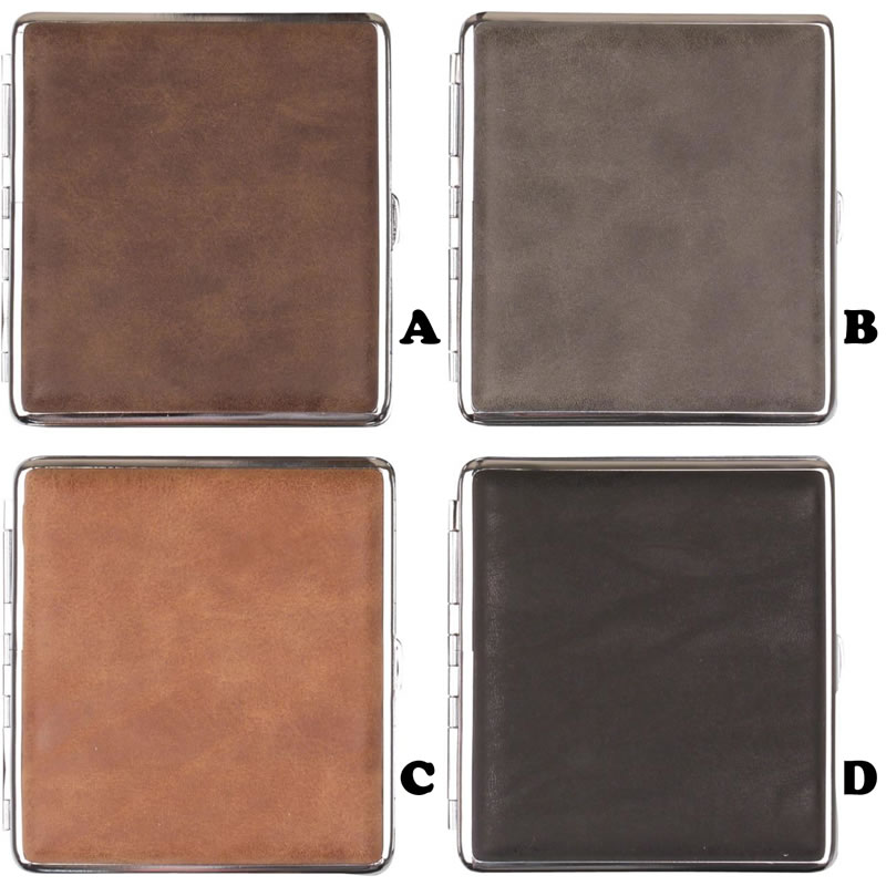 Cigarette case Chrome frame. Leatherette Assorted colours. 20 cigarettes 85 mm