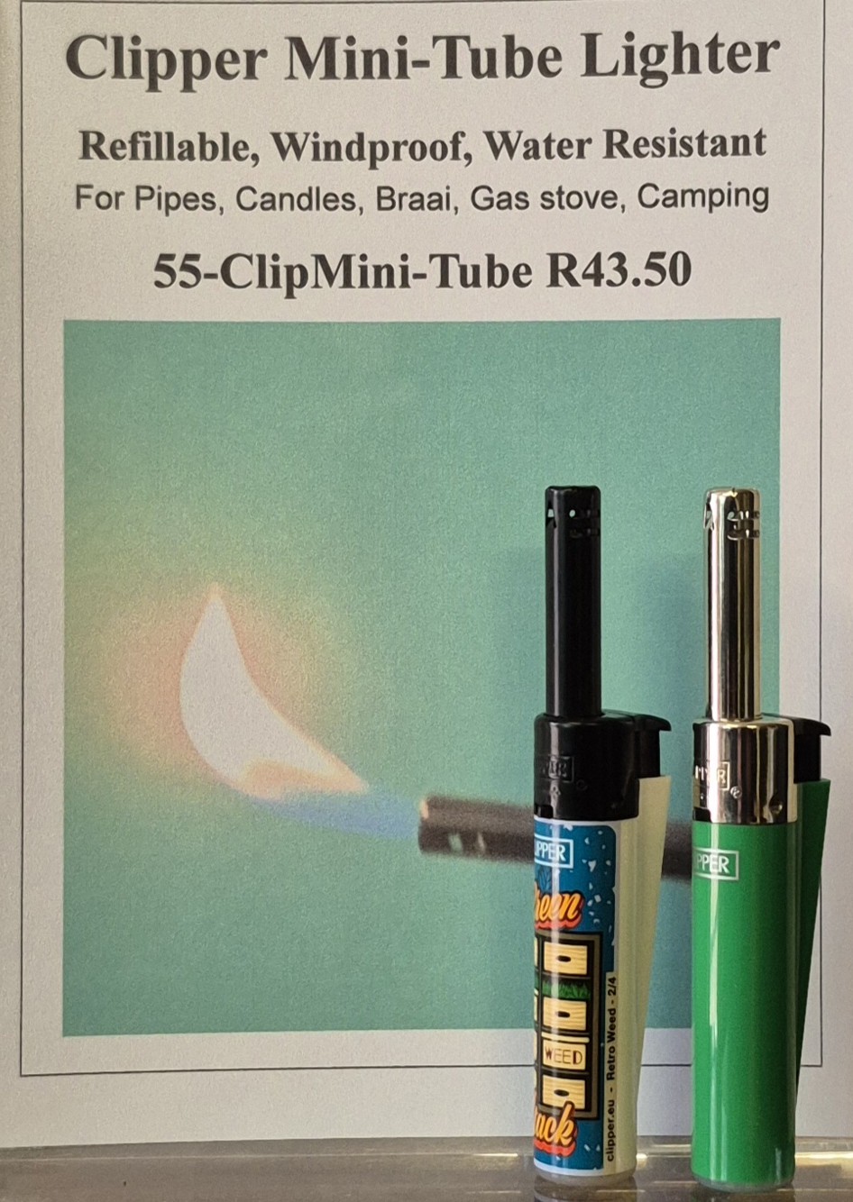 Clipper Mini Tube Lighter. Pocket size. Lighter and tube only 11cm long. Refillable, 55-ClipMiniTube
