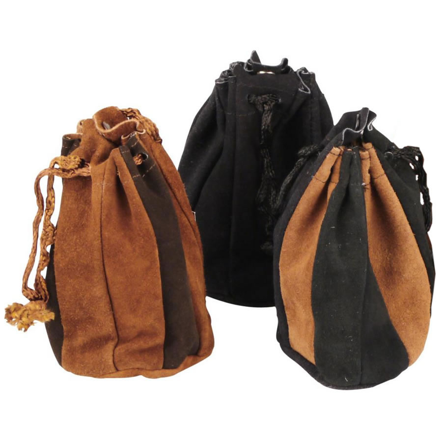 Drawstring Pouch; Suede,Lined; Stud closure;Black or Panels