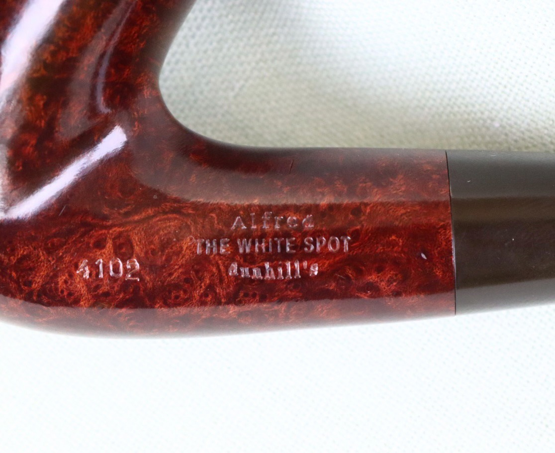 - The durability and cool sweet smoking of the Alfred Dunhill pipe with its “White Spot” trademark are universally acclaimed. Made from the finest quality briar, the “Dunhill” represents more than 90 separate processes over a period of several months. While there are checks and quality controls every step of the way, the final inspection before each pipe is released onto the market is made by only one person. An indication of the scarcity of fine briar to meet the standards demanded of a Dunhill “White Spot” pipe. These standards ensure that each pipe will smoke perfectly from the start and, with proper care, will never lose its original sweetness. The flawless briars are perfect – no fills, no flaws, no pits; only 5 out of every 100 ebauchons entering the factory leave as a Dunhill. The mouthpiece of every Dunhill pipe is hand-cut from a solid rod of “Vulcanite” – the Dunhill name for a rubber compound which, although tough, is easy on the teeth and does not flavour/taint the smoke. In colour it may be Black, or Cumberland (marbled brown). The Dunhill “White Spot” was the first pipe to carry a guarantee. That little white spot is still a symbol of perfection and style, and the guarantee still holds. Dunhill pipes have an exceptionally long life and are in great demand as refurbished “estate” pipes. They are highly regarded as “Collectibles”.