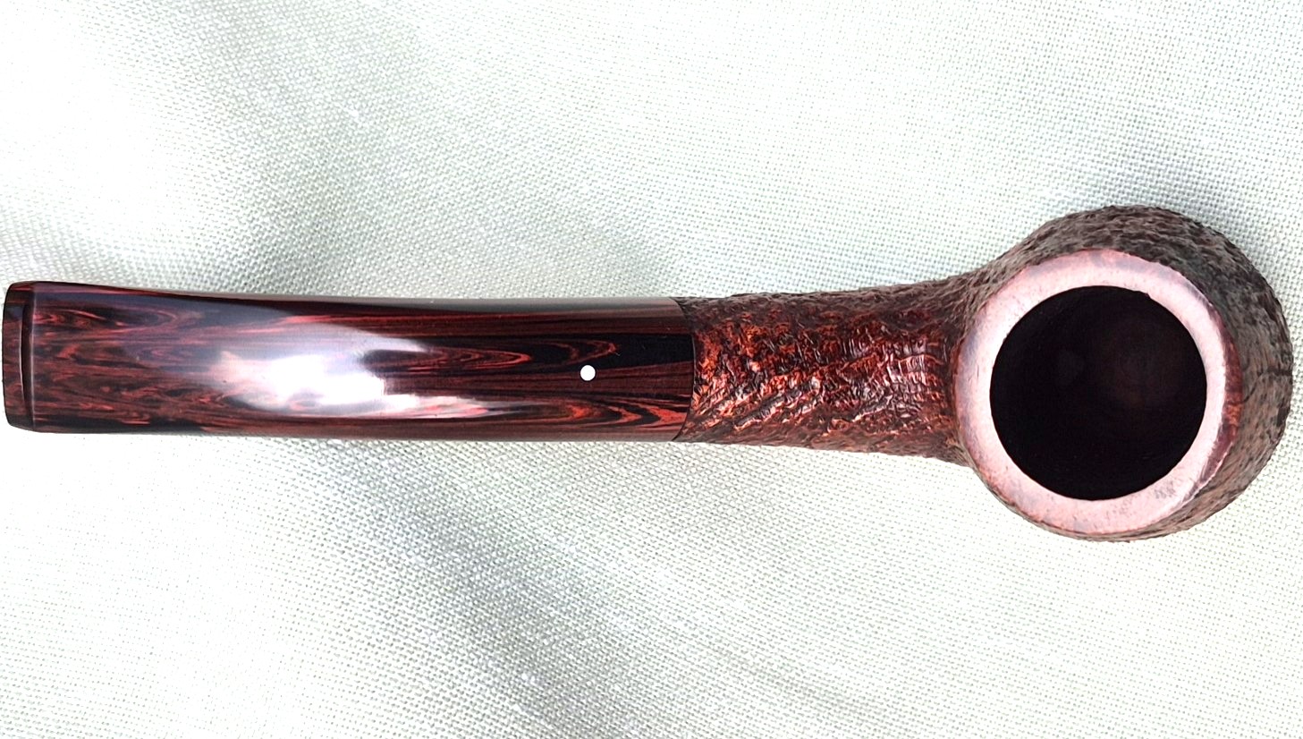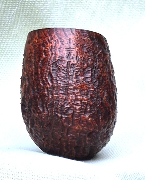 • The bowls have had the soft wood on the surface sandblasted off. Any weak bowls shatter under this process. The survivors are remarkably tough and light. A noticeable advantage especially for the larger bowl sizes. The shell briar is usually a little thinner-walled than its smooth counterpart and may need a little more care in building up the carbon layer.
