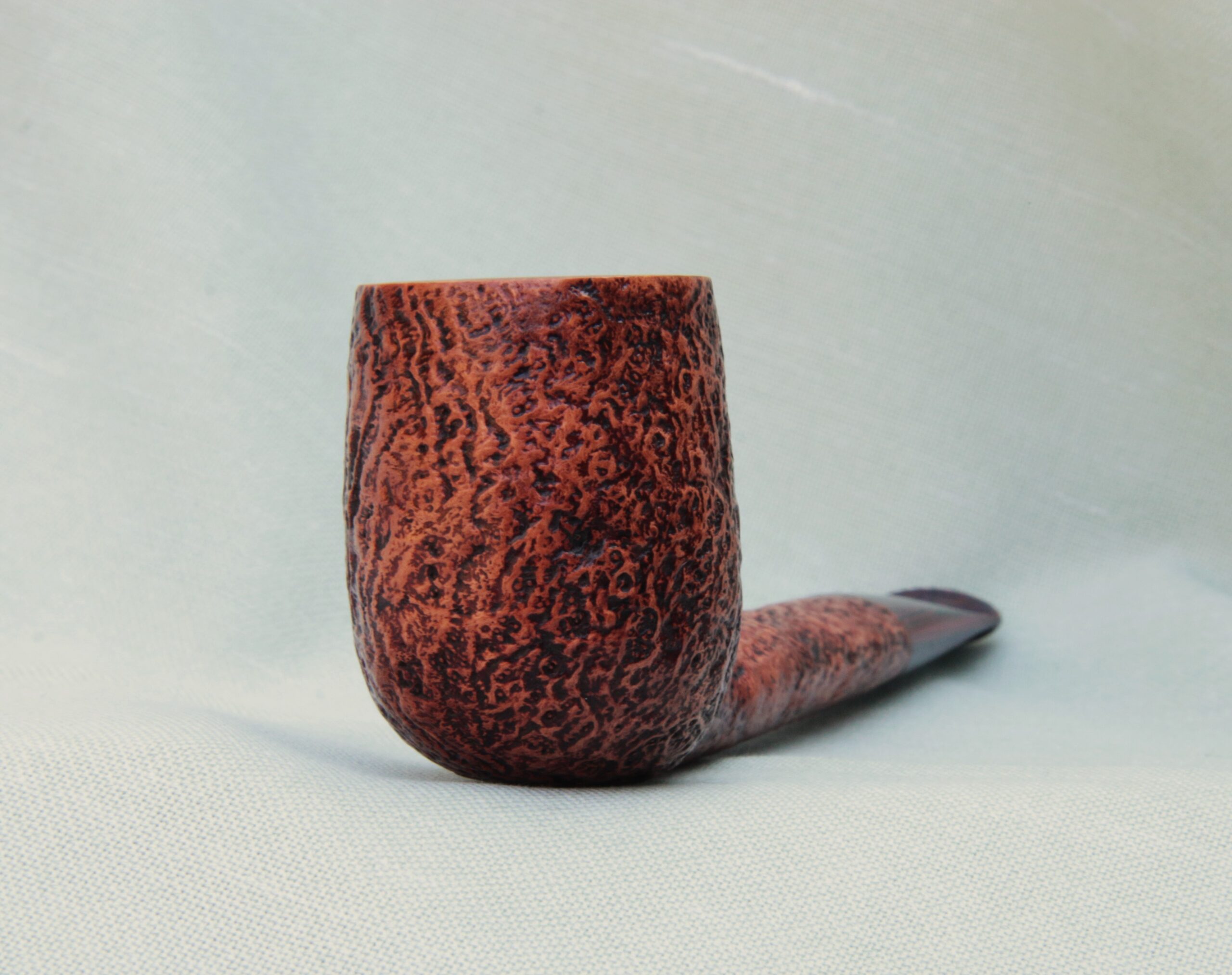 • The newest finish, a lighter modern, washed, deep tan colour which tones beautifully with the Cumberland mouthpiece. The extra buffing to achieve the “washed” look results in a satin-smooth finish to these sandblasted pipes. The contrast between the dark valleys and light ridges makes it easy to appreciate the grain.