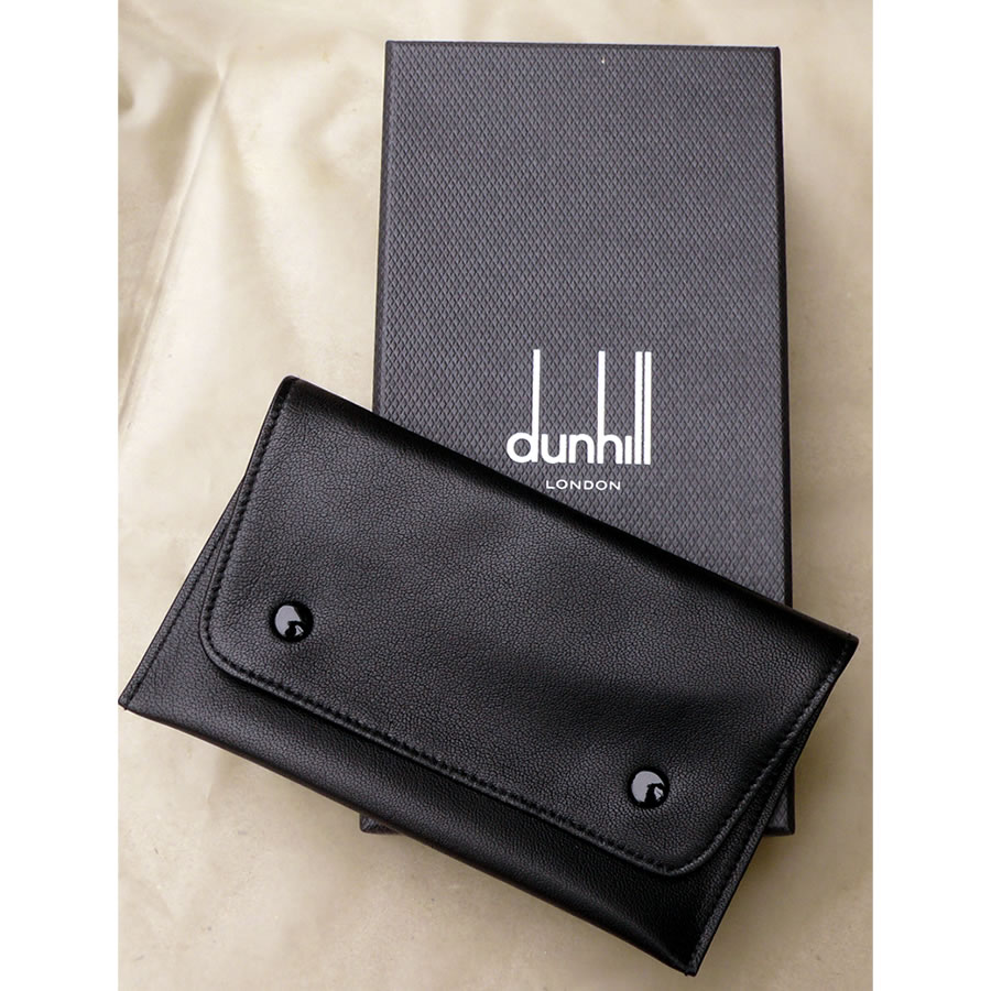 Dunhill White Spot Button Pouch; Soft black lambskin