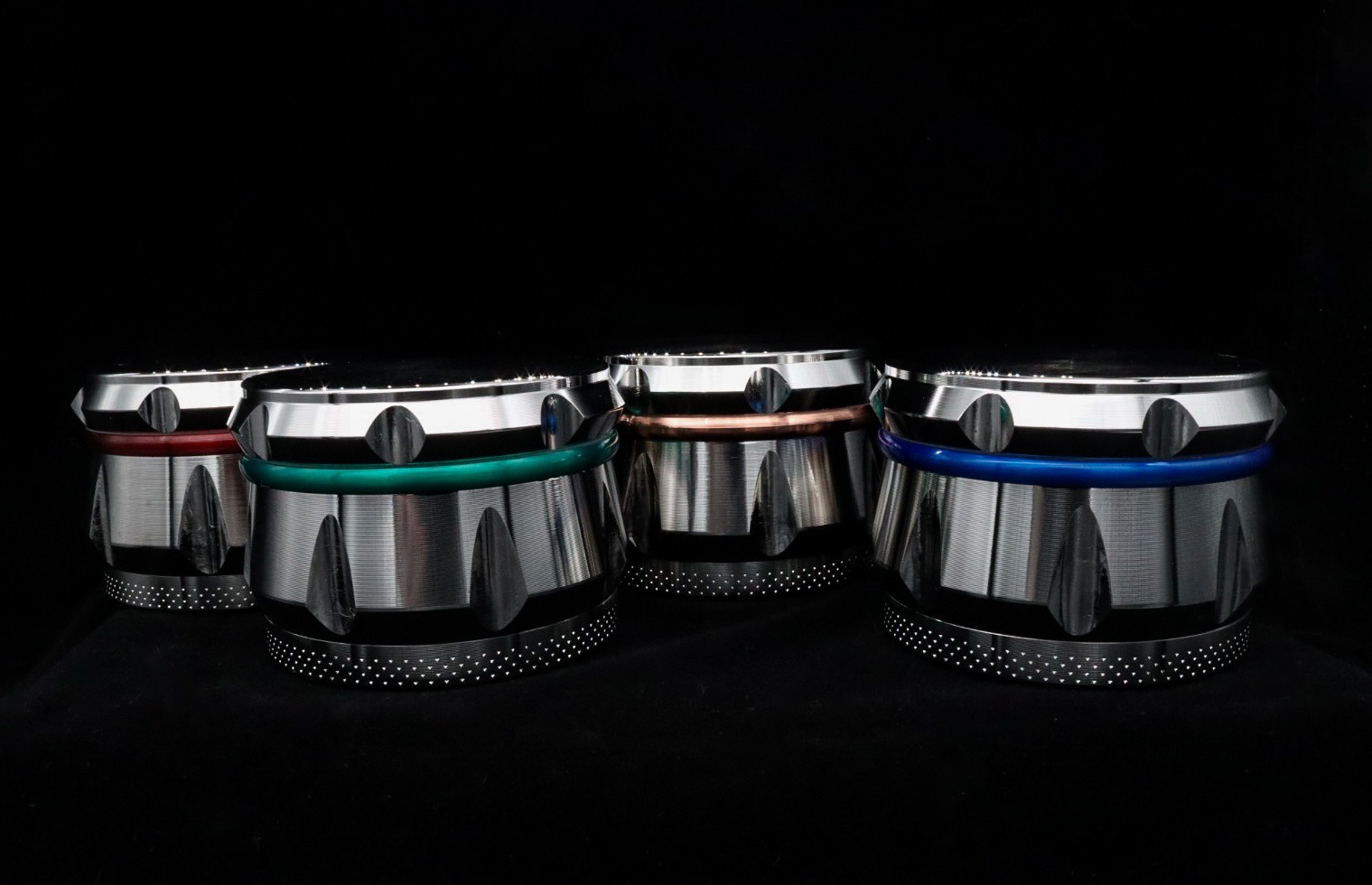 Grinder, 4-parts Ø49/H38mm Metal Chrome with a band of colour 75-JGr0314