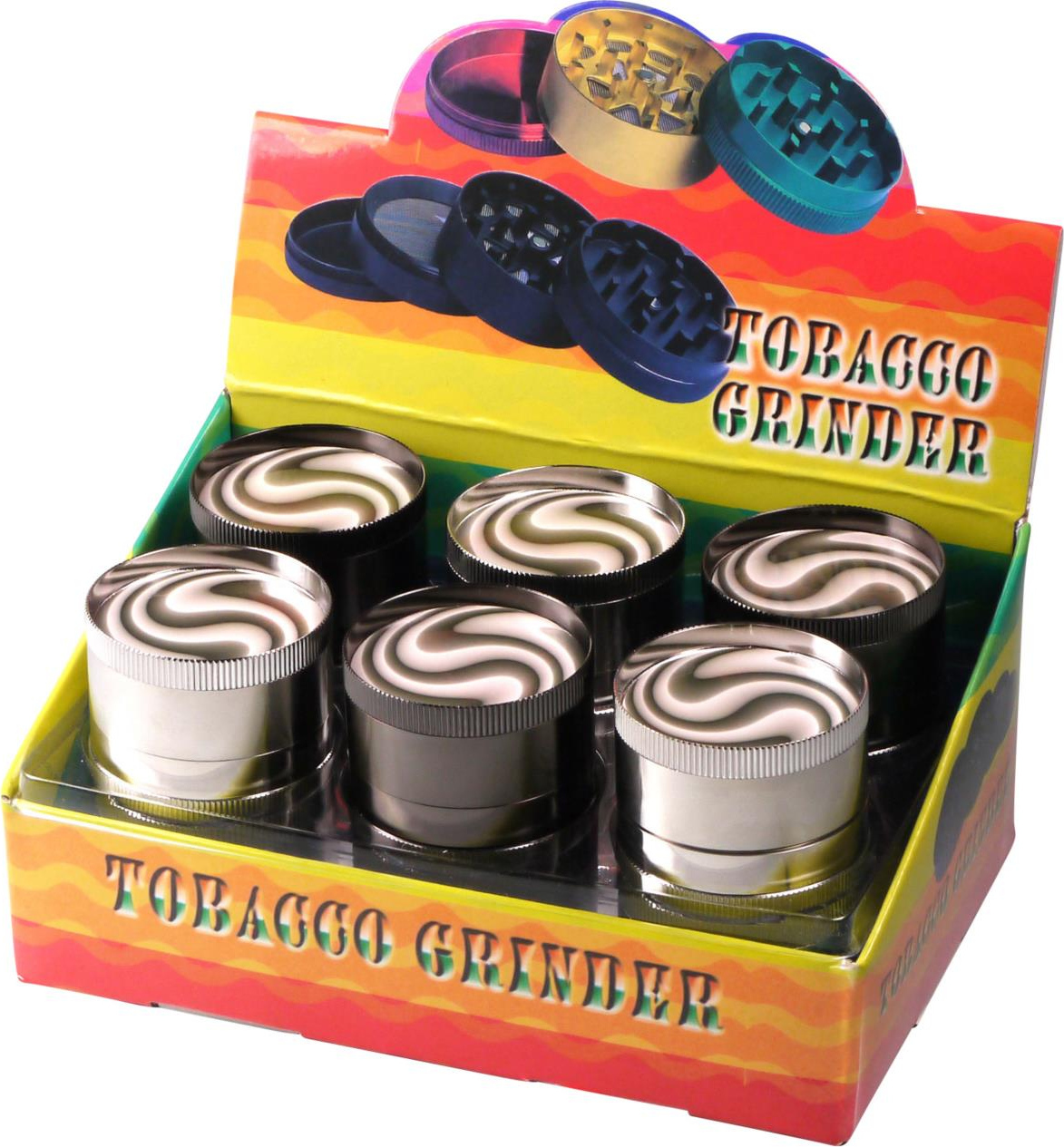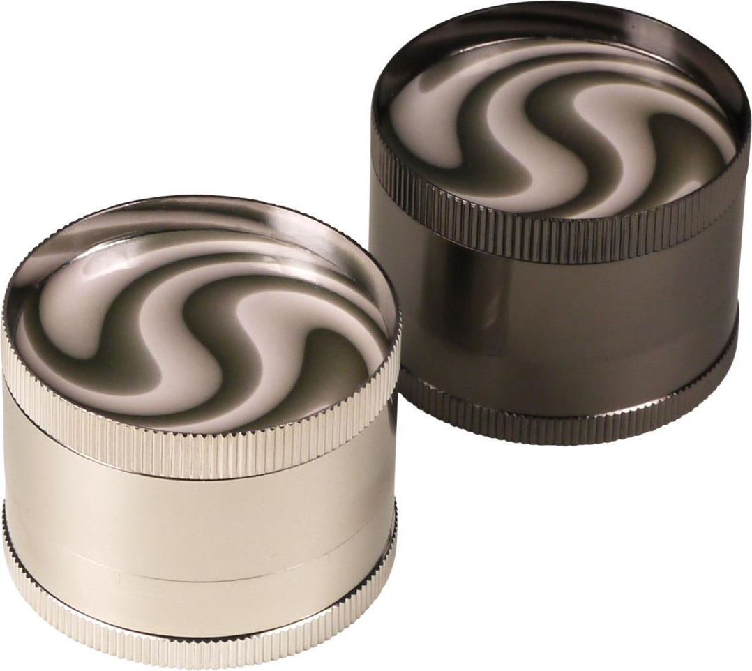 Grinder, Nickel or Gunmetal,4 part,Ht37mmx50mm,Grey swirl sticker