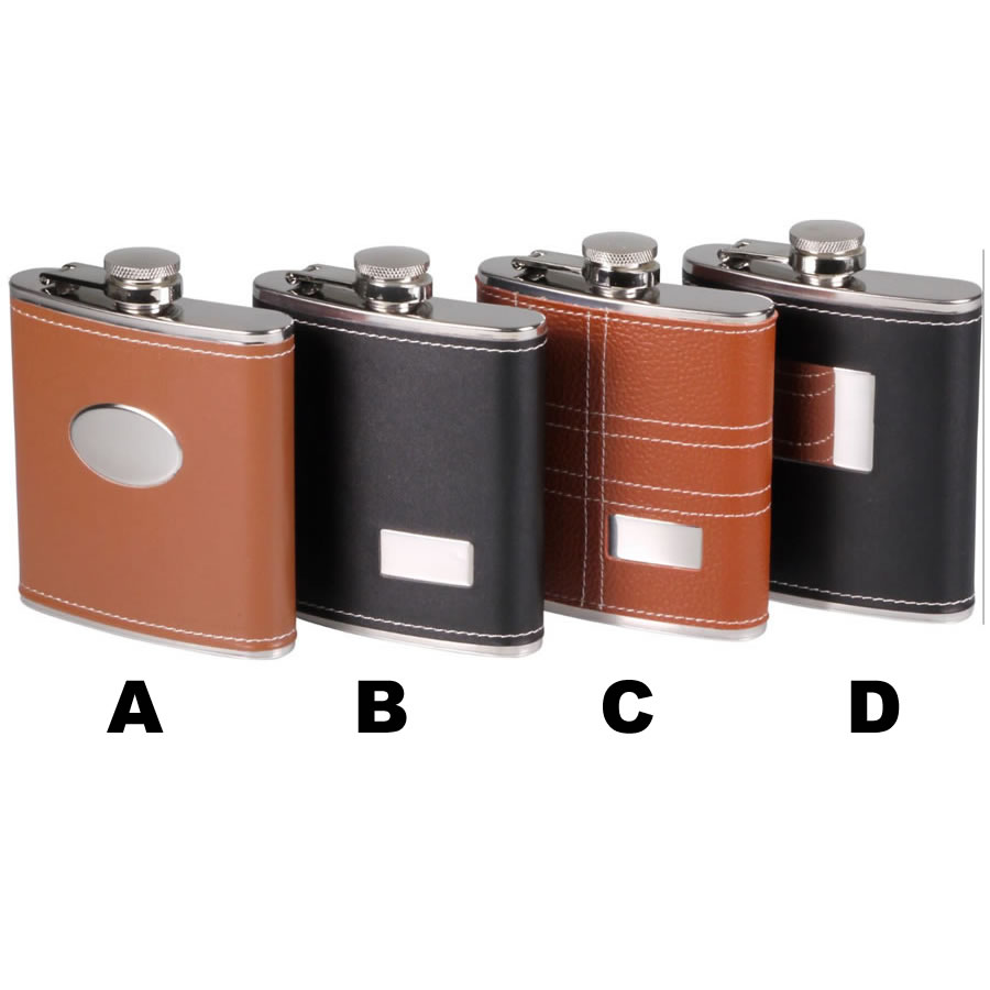 Hip Flask, 6oz/180ml, Synthetic leather cover; engraving plate