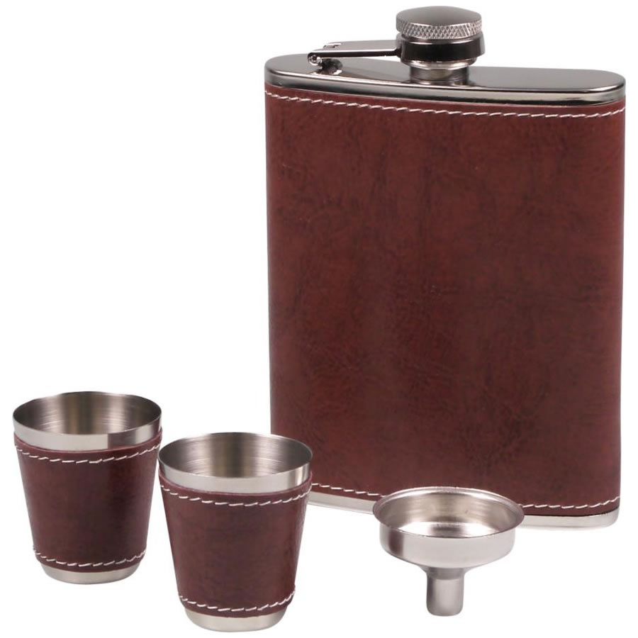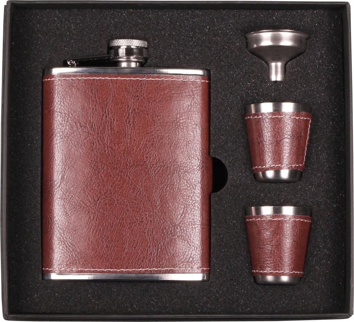Hipflask, Rich brown leatherette, 2 Cups, Funnel Gift Box 7oz/210ml;