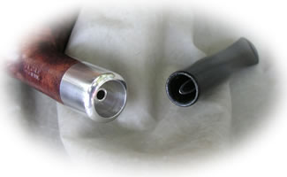 The patented features of the Keyser pipe are the aluminium condensing chambers in the shank and mouthpiece, together with the protruding aluminium tubes from shank and mouthpiece. There being no connection between these tubes, moisture is trapped in the two chambers.