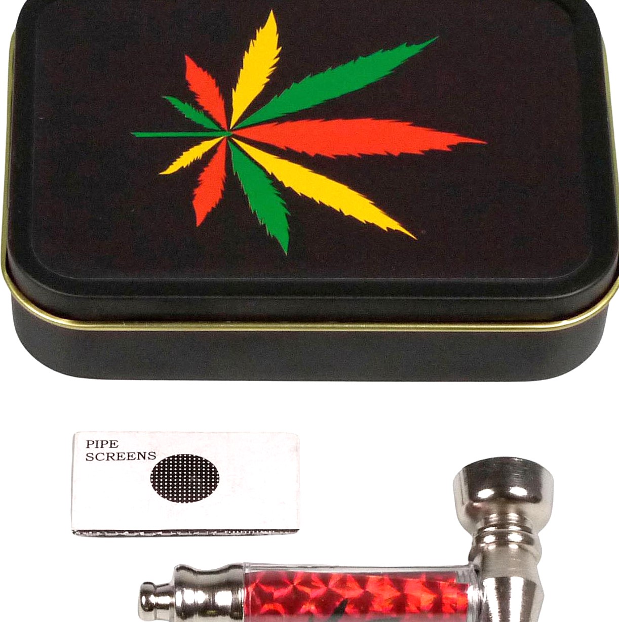 Set Metal/glass pipe, plastic grinder and screens, in single blister pack