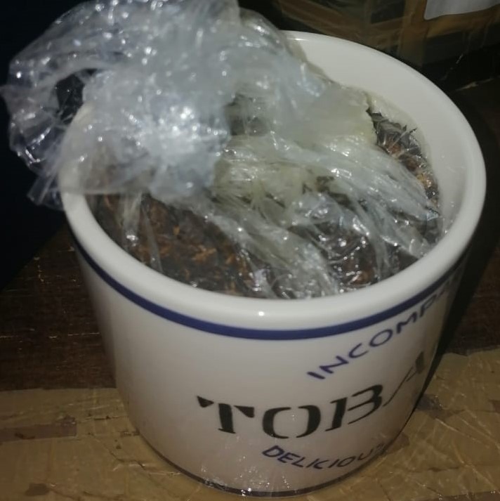 Holds about 225g tobacco. Picture shows 200g tobacco in plastic bag.