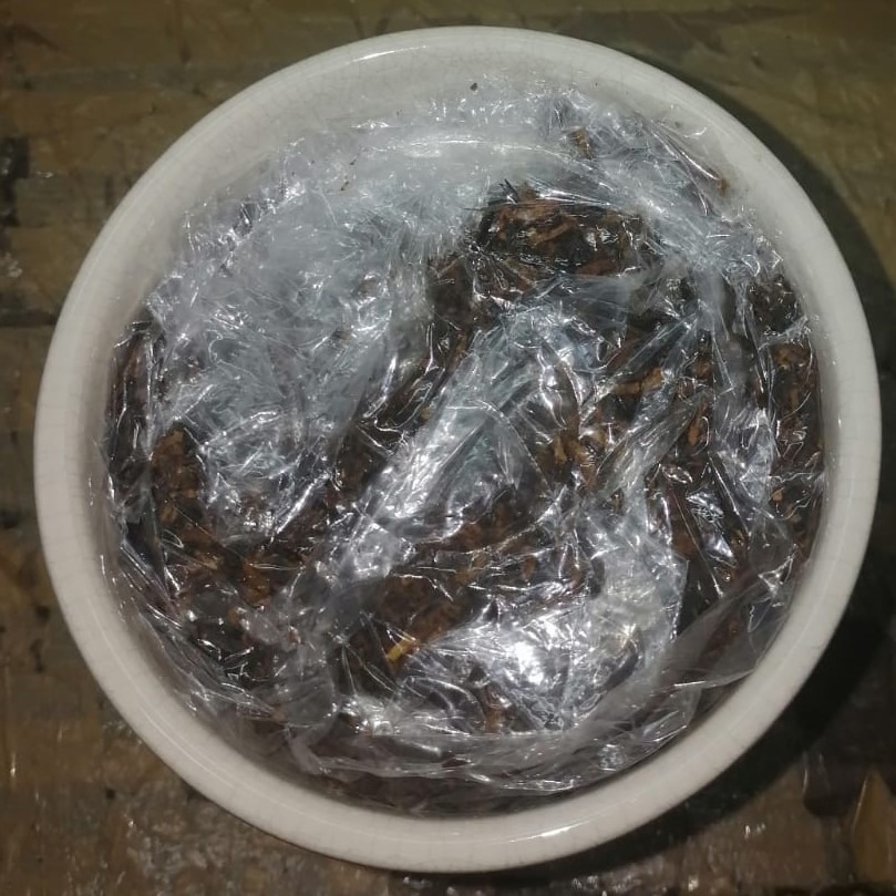 Holds about 300g tobacco. Picture shows 300g tobacco in plastic bag.
